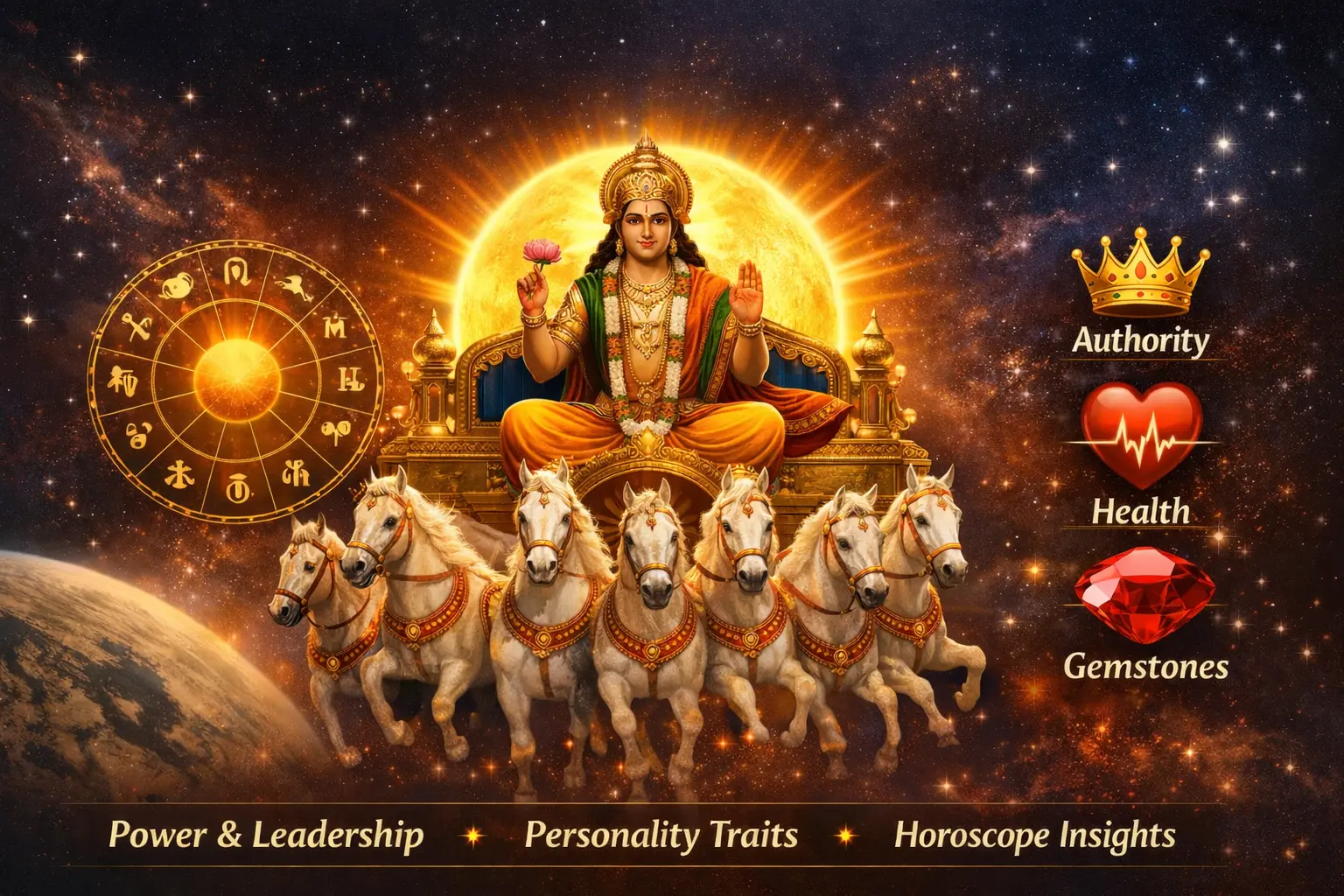 Navagraha Introduction The Sun (Surya) — Personality, Power, and Influence in Human Life Almost all planets influence human life according to their respective strengths, but one planet often becomes dominant and exerts a complete auspicious